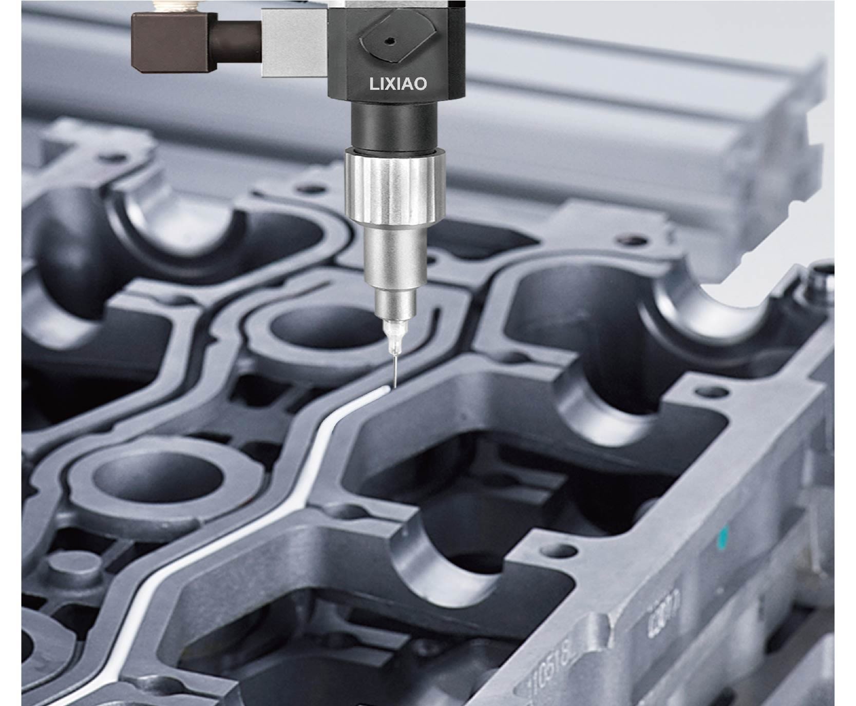 全中文顯示界面,易學(xué)易懂。出膠口采用雙液靜態(tài)膠閥,下接靜態(tài)攪拌管,實(shí)現(xiàn)AB膠均勻混合,杜絕了灌出膠水不干等現(xiàn)象發(fā)生;膠量控制精確。